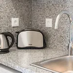 Os quartos também têm uma televisão de ecrã plano com canais por satélite, controle de temperatura e kitchenette.